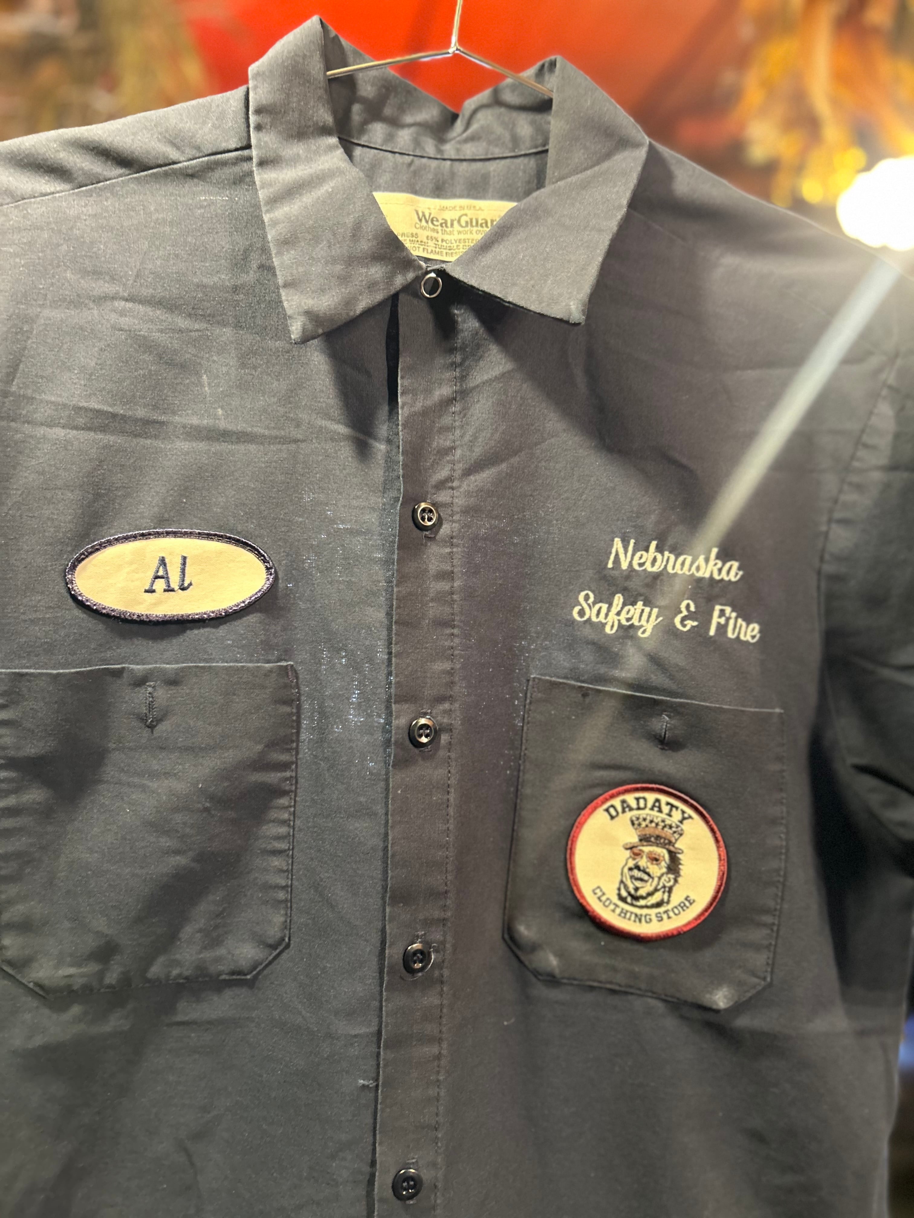 【USA製】WearGuard ワークシャツ 半袖 Dadatyロゴワッペン付 ネイビー L